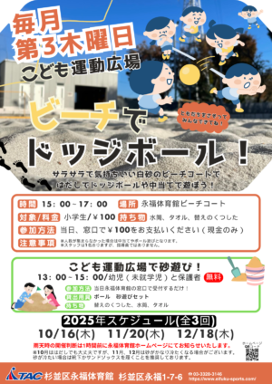 ・雨天時の開催の判断は1時間前に永福体育館ホームページにてお知らせいたします。